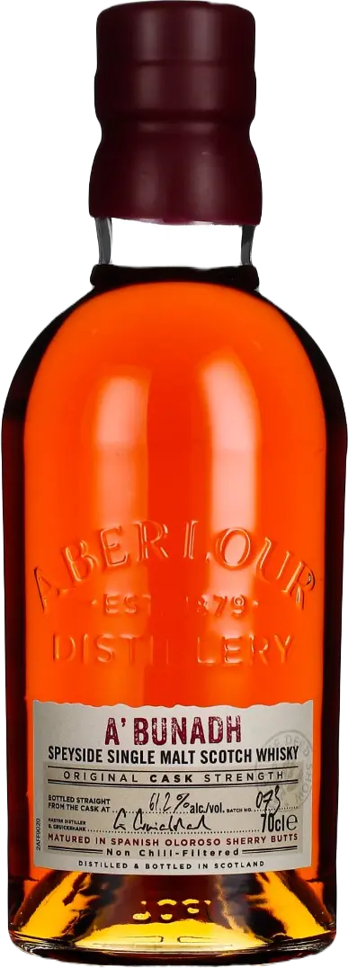 The Aberlour distillery is located in the Speyside region of Scotland and was founded in 1879 by James Fleming. The distillery draws its water from the nearby mountain, Ben Rinnes, which is known for its pure and soft water. Aberlour produces a range of single malt whiskies, including the 12-year-old, 16-year-old, and A'Bunadh, which is a cask-strength expression. The distillery uses traditional copper pot stills and maturation takes place in oak casks, resulting in whiskies that are rich and complex with a fruity character. The Aberlour distillery has a long-standing relationship with the famous French cognac house, Martell, and have collaborated on a number of limited edition whiskies.